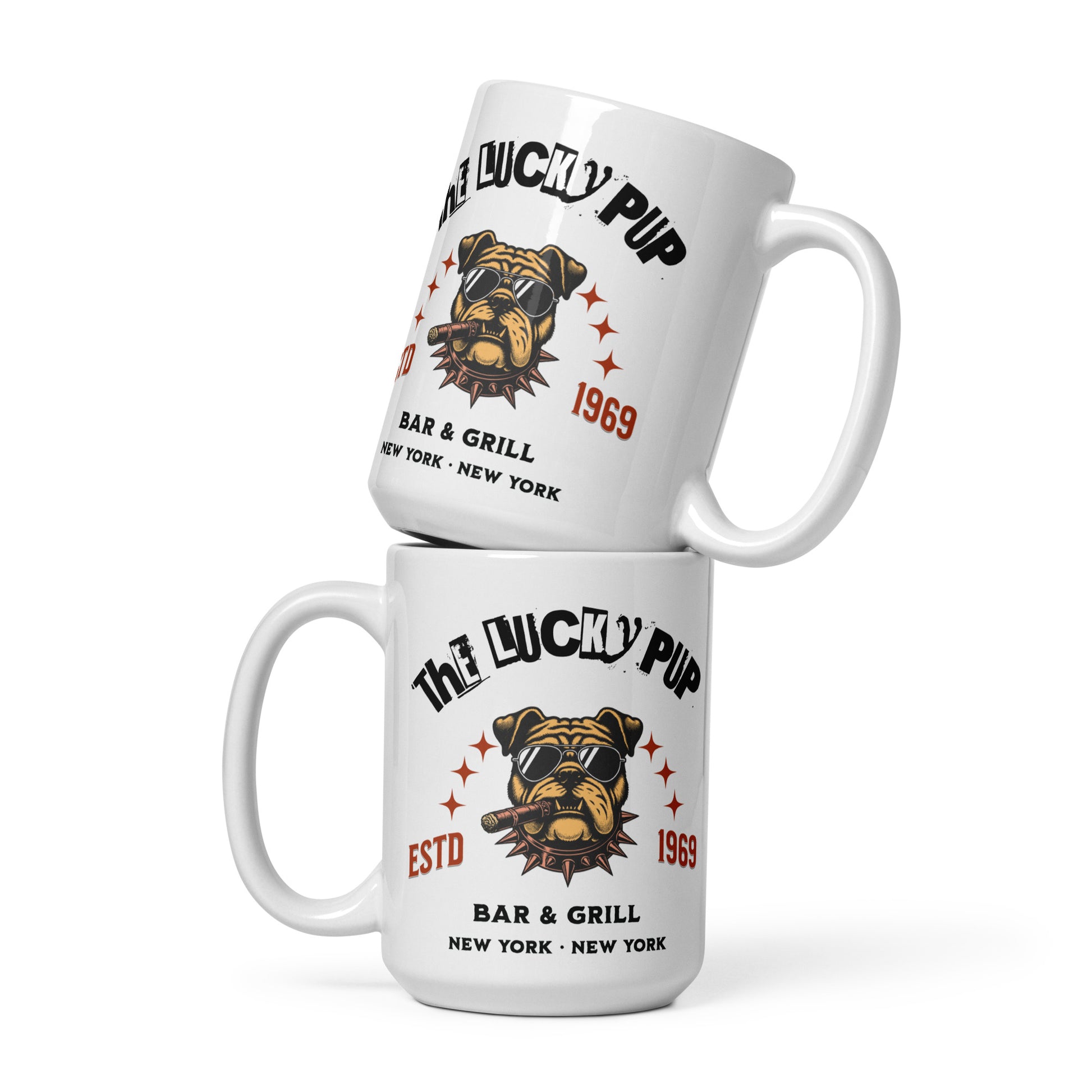 Start your day on the right paw with our charming and delightful The Lucky Pup Bar & Grill coffee mug. Whether you're enjoying your morning brew or unwinding with an evening cup, this mug is sure to bring fond memories of your favorite neighborhood hangout and its cozy ambiance. It's sturdy and glossy with a vivid print that'll withstand the microwave and dishwasher.